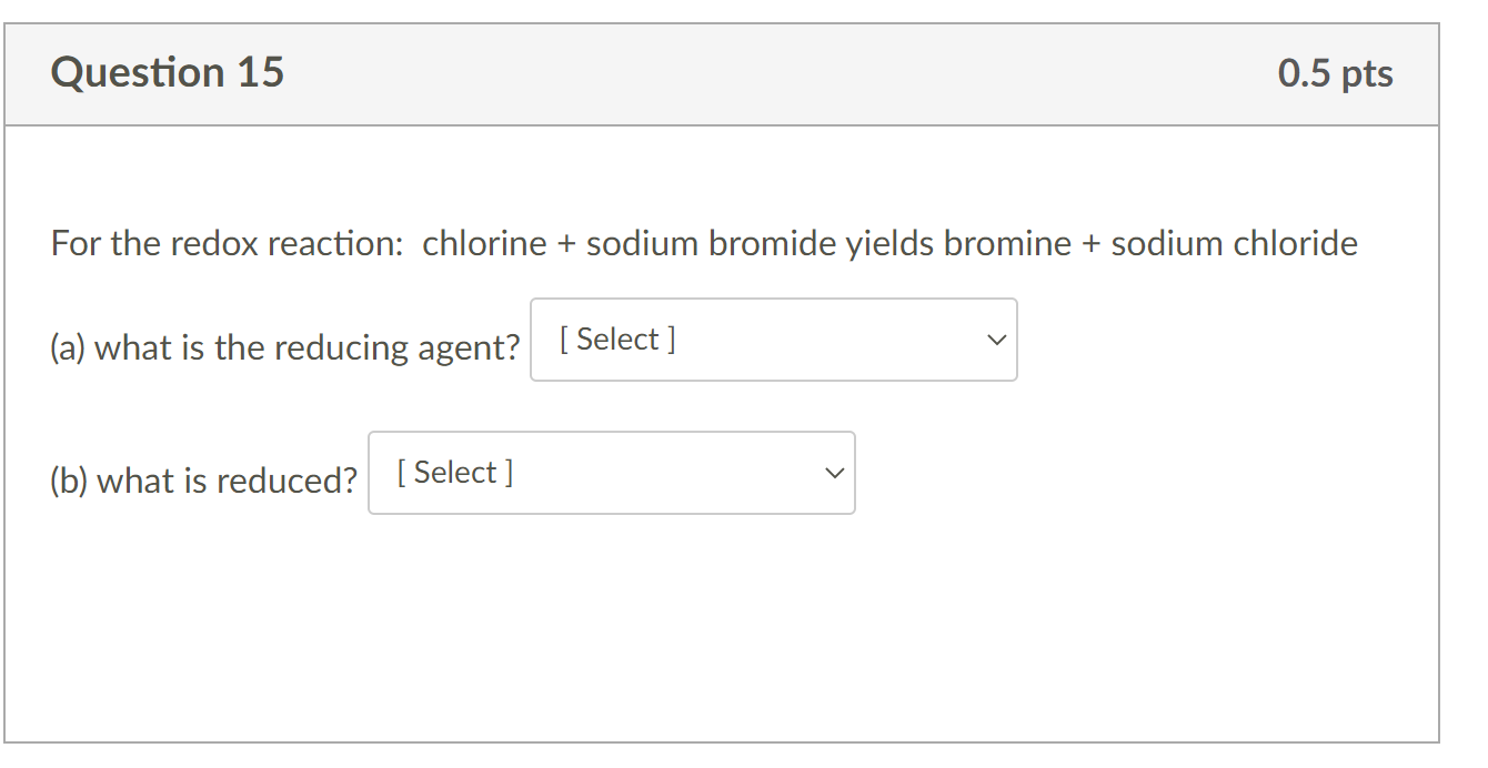Solved For the redox reaction chlorine + sodium bromide